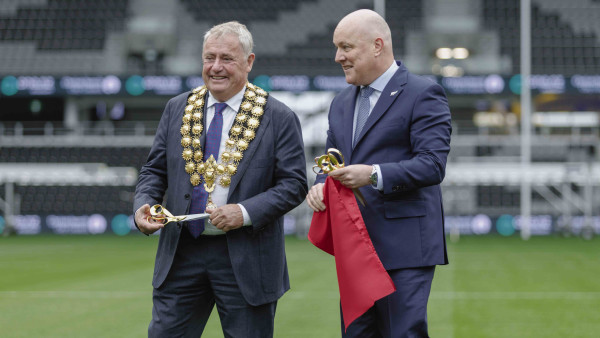 One New Zealand Stadium at Te Kaha was officially opened by Mayor Phil Mauger at a ceremony this morning.